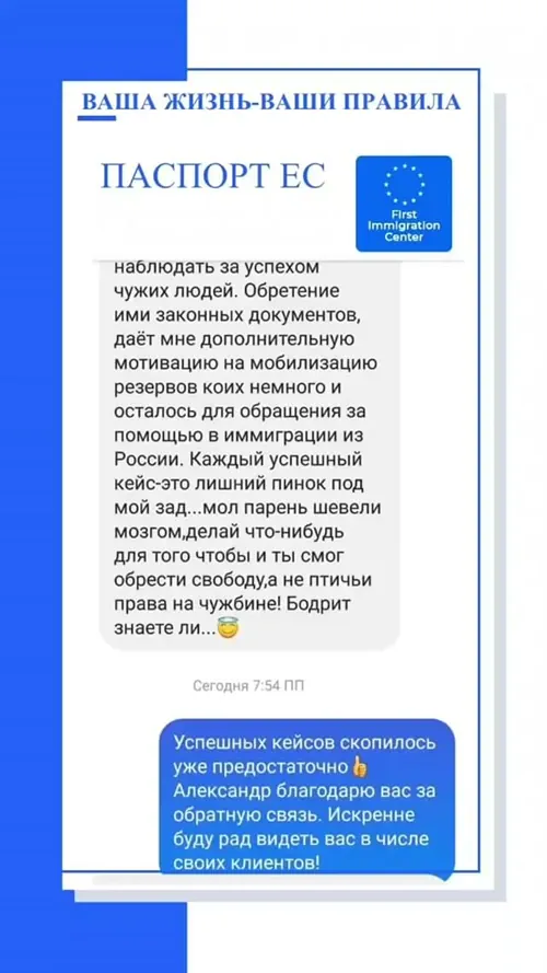 Консультации наших адвокатов и оценка ваших шансов на получение гражданства Европы или ВНЖ всегда бесплатны. Мы берем деньги только за конкретную работу по вашей иммиграции или релокации бизнеса.