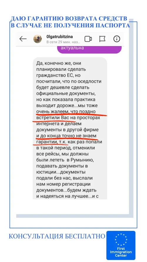 В 98,8% заявители получают ВНЖ или гражданство Европы, США, Канады и Карибских стран. Остальным Первый иммиграционный центр вернул деньги по гарантии, указанной в договоре.